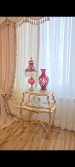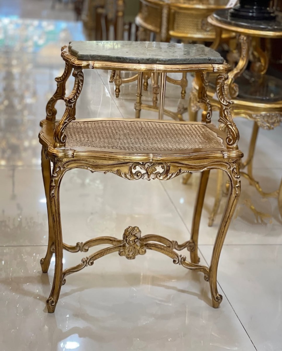 میز دوطبقه سلطنتی طلایی یک انتخاب لوکس و چشمگیر برای دکوراسیون منزل است.این میز با پایه های منحنی و طراحی منبت کاری شده،جلوه ای کلاسیک و اشرافی ایجاد می کند.سطح میز با رنگ طلایی براق پوشانده شده و قرار دادن دکوری های کریستالی روی آن،زیبایی آن را چند برابر می کند.این محصول مناسب پذیرایی،نشیمن و فضاهای لاکچری است و به راحتی با انواع سبک های دکور هماهنگ می شود.